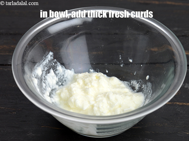 In a bowl, add 2 tbsp thick fresh curds (dahi).