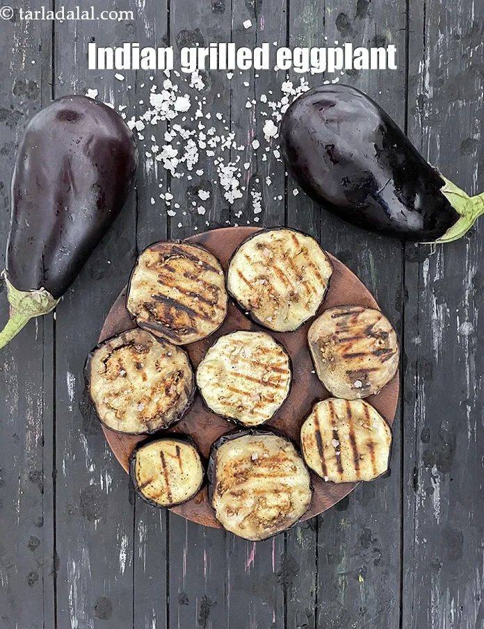 like grilled baingan recipe | Indian grilled eggplant | spice roasted aubergine | healthy grilled brinjal snack | then see our collection of healthy grilled Indian recipes and some recipes we love.
