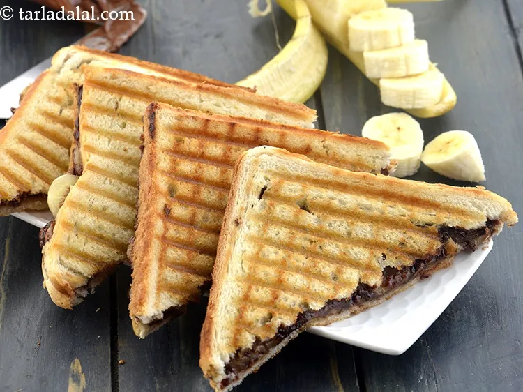 grilled chocolate banana sandwich recipe | easy breakfast recipe | grilled nutella banana sandwich | Video by Tarla Dalal