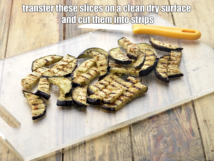- Transfer these slices on a clean dry surface and cut them into strips using a sharp knife.