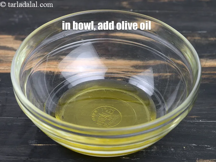 एक कटोरे में २ टी-स्पून जैतून का तेल (olive oil) डालें।