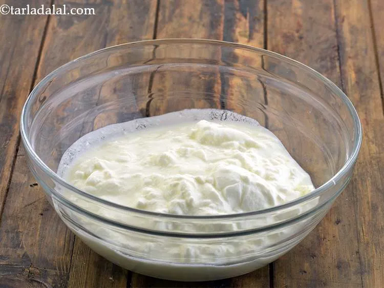For the Gujarati kadhi recipe, in a large bowl, add the 2 cups fresh curd (dahi).
