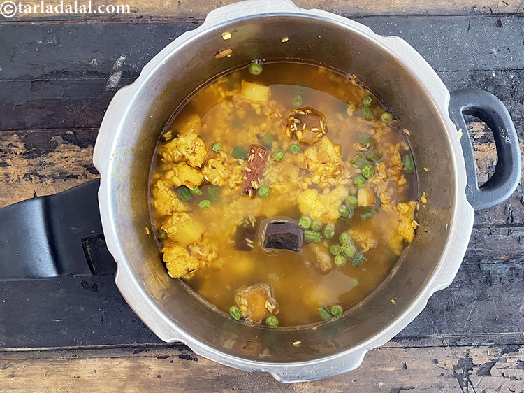 Pressure cook for 3 to 4 whistles. Allow the steam to escape before opening the lid.