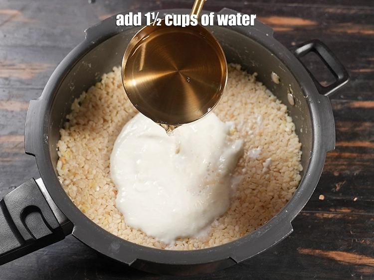 गाढ़ापन समायोजित करने के लिए 1½ कप पानी डालें।  ![]()