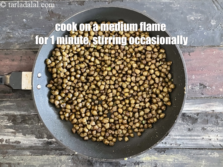 - To make hare chane ki chaat, heat the butter in a non-stick pan, add the hara chana, mix well and sauté on a medium flame for 1 minute.