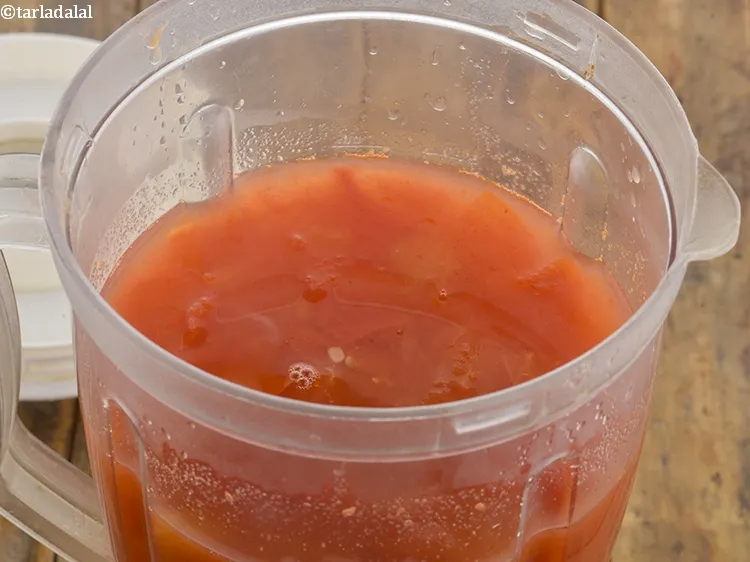 - Blend in a mixer to a smooth mixture. Do not strain and keep aside.
