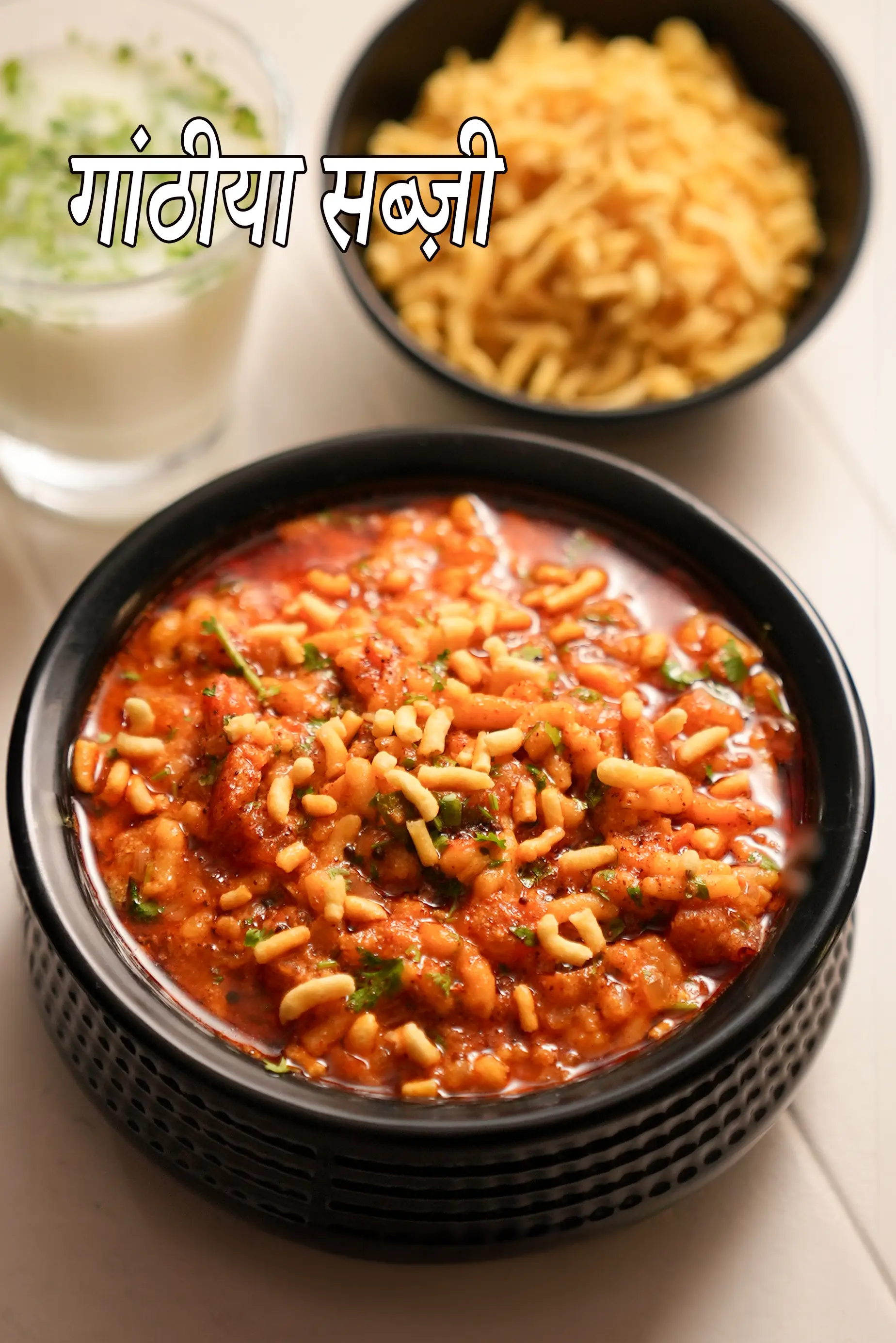 गांठिया की सब्ज़ी रेसिपी | गुजराती गांठिया नु शाक | गाठिया रसावाला सब्जी |