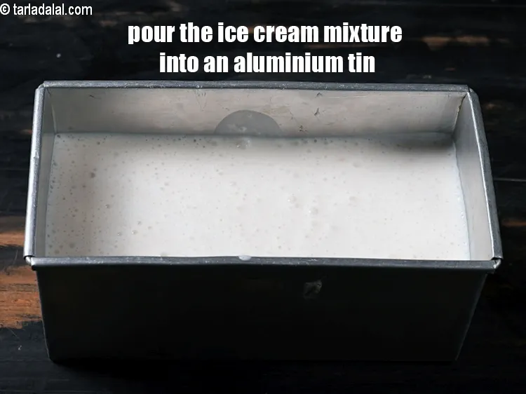 Pour the ice cream mixture into an aluminium tin.