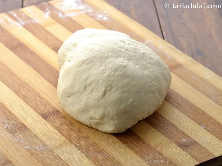 - मैदा, बेकिंग पाउडर, यीस्ट-दूध का मिश्रण और नमक अच्छी तरह से मिलाएं और लगभग 1 कप गर्म पानी का उपयोग करके नरम आटा गूंध लें।