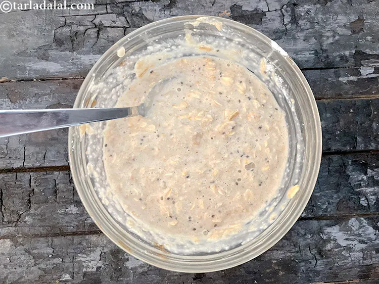 Leave half the oats (1/4 cup) unblended. Add it in a glass bowl.