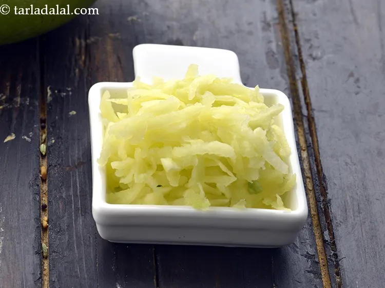 कच्चे आम को पतले लंबे स्ट्रिप्स् में स्लाईस करें, कच्ची कैरी को पूरी तरह से नया आयाम देने के लिए मसाला पाउडर के साथ मिलाएँ। हमने इस रेसिपी के लिए सरसों के तेल का उपयोग किया है ताकि इसे एक प्रामाणिक सुगंध और स्वाद दिया जा सके, लेकिन आप इसे अपनी पसंद के अनुसार किसी भी अन्य रिफाइंड तेल के साथ बदल सकते हैं।
