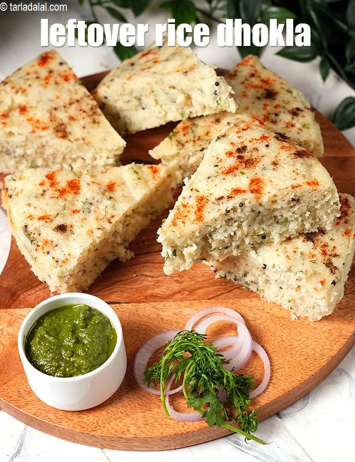 instant rice dhokla recipe | leftover rice dhokla recipe | leftover rice snacks | Video by Tarla Dalal