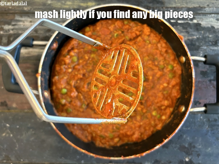 Mash Jain pav bhaji lightly using a potato masher. The best time to mash is after cooking.