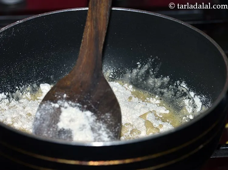 घी गरम होने के बाद उसमें 1/2 कप ज्वार का आटा (jowar flour) डालें। सुखड़ी आमतौर पर गेहूं के आटे के साथ बनाई जाती है, यह इस रेसिपी की एक विभिन्नता है। इस रेसिपी में इस्तेमाल किये जाने वाले ज्वार के आटे में लोह का एक अच्छा स्रोत है और यह आपके बच्चे के हीमोग्लोबिन के स्तर को बनाये रखने में मदद करता है।