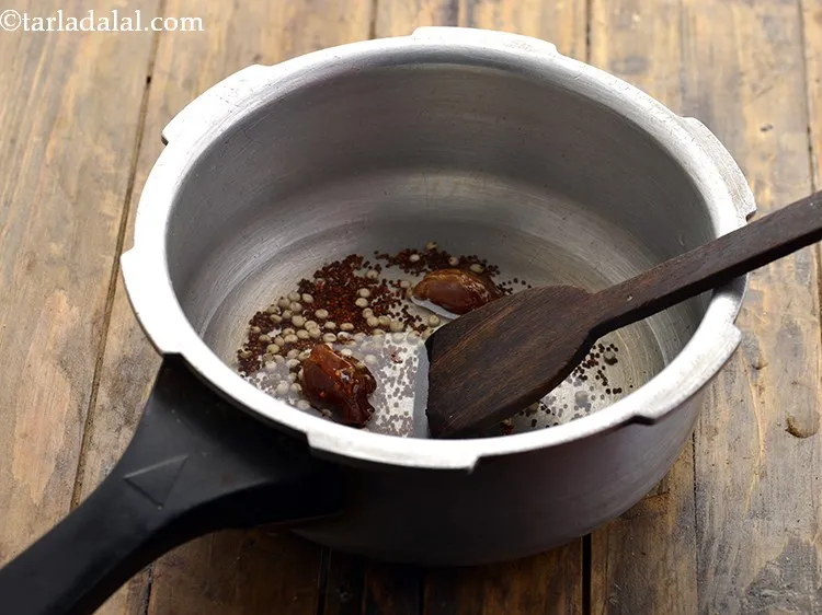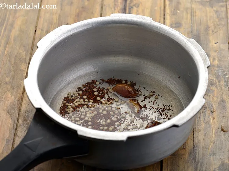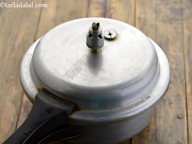 Close the lid of the pressure cooker and pressure cook for 3 whistles. Allow the steam to escape before opening the lid.