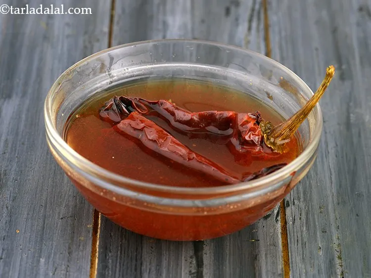 - 2 whole dry Kashmiri red chilli , soaked and finely chopped
