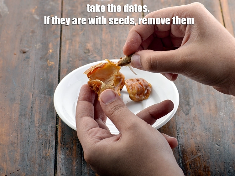 For the khajur imli chutney recipe | date tamarind chutney | meetha chutney for chaats | sweet tamarind chutney | take the 1 cup dates (khajur). If they are with seeds, remove them.