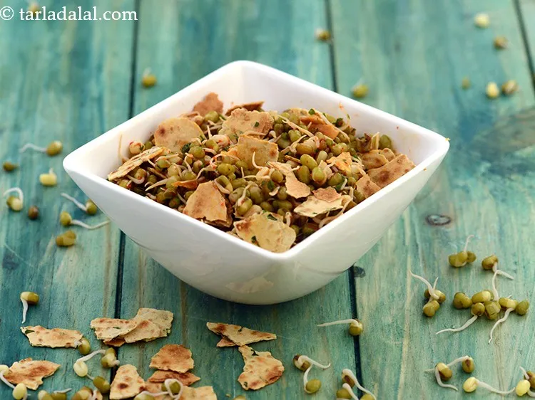 khakhra with sprouted moong recipe | moong with khakhra | healthy Indian breakfast is a satiating breakfast which can be prepared in advance. Learn how to make moong with khakhra.