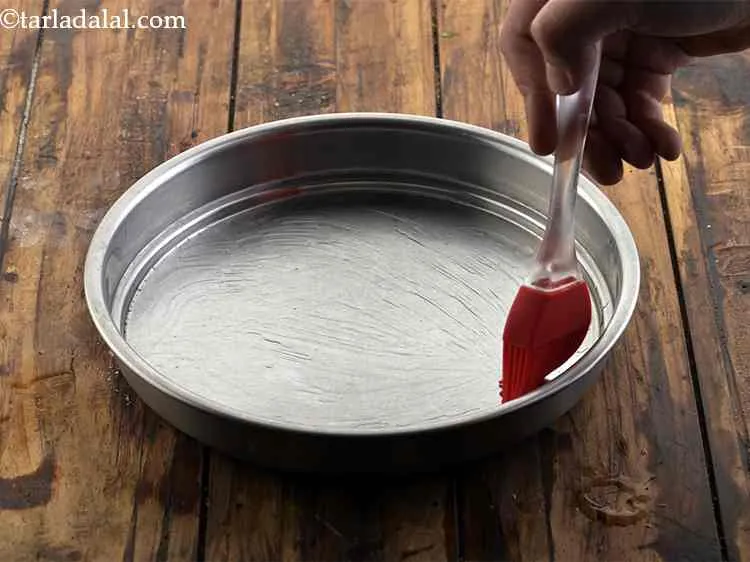 - Pour the mixture immediately to a greased 175 mm. (7") diameter thali and spread evenly by rotating the thali clockwise.