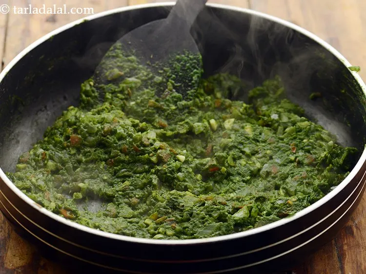 - Add the spinach puree and salt and cook for another 3 to 4 minutes.