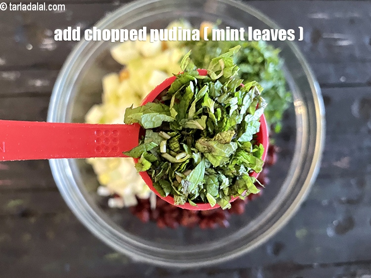 Add 2 tbsp finely chopped mint leaves (phudina).