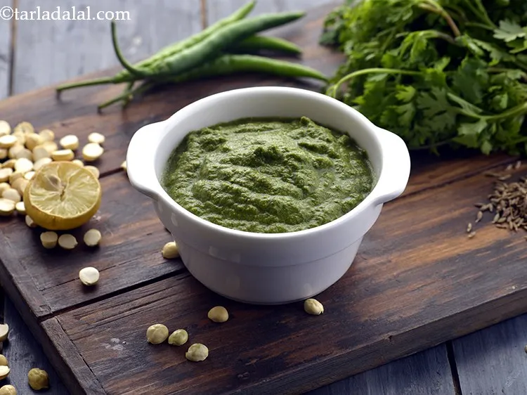 Chutneys are a favourite accompaniment for snacks as well for main meals. This Low Calorie Green Chutney uses roasted chana dal (daria) instead of fat laden ingredients like coconut and peanuts.