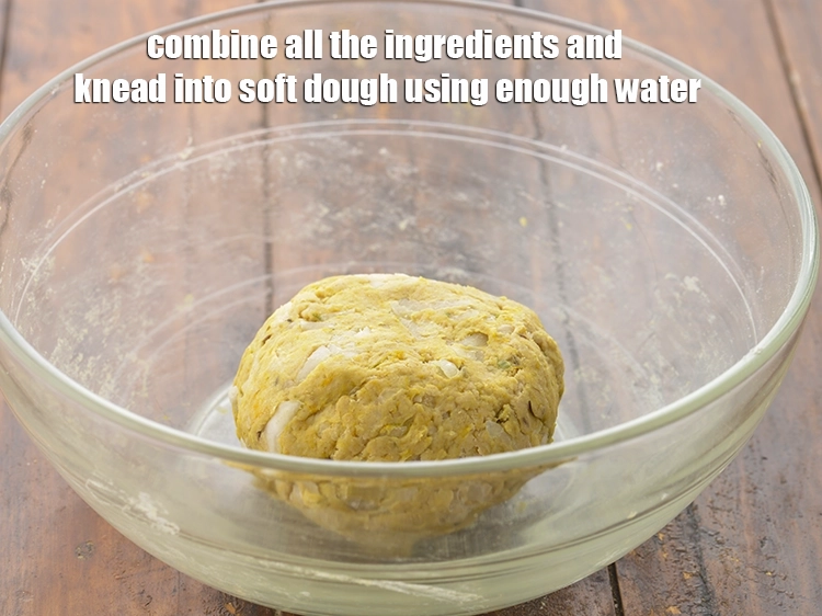 - Combine all the ingredients in a deep bowl and knead into soft dough using enough water.