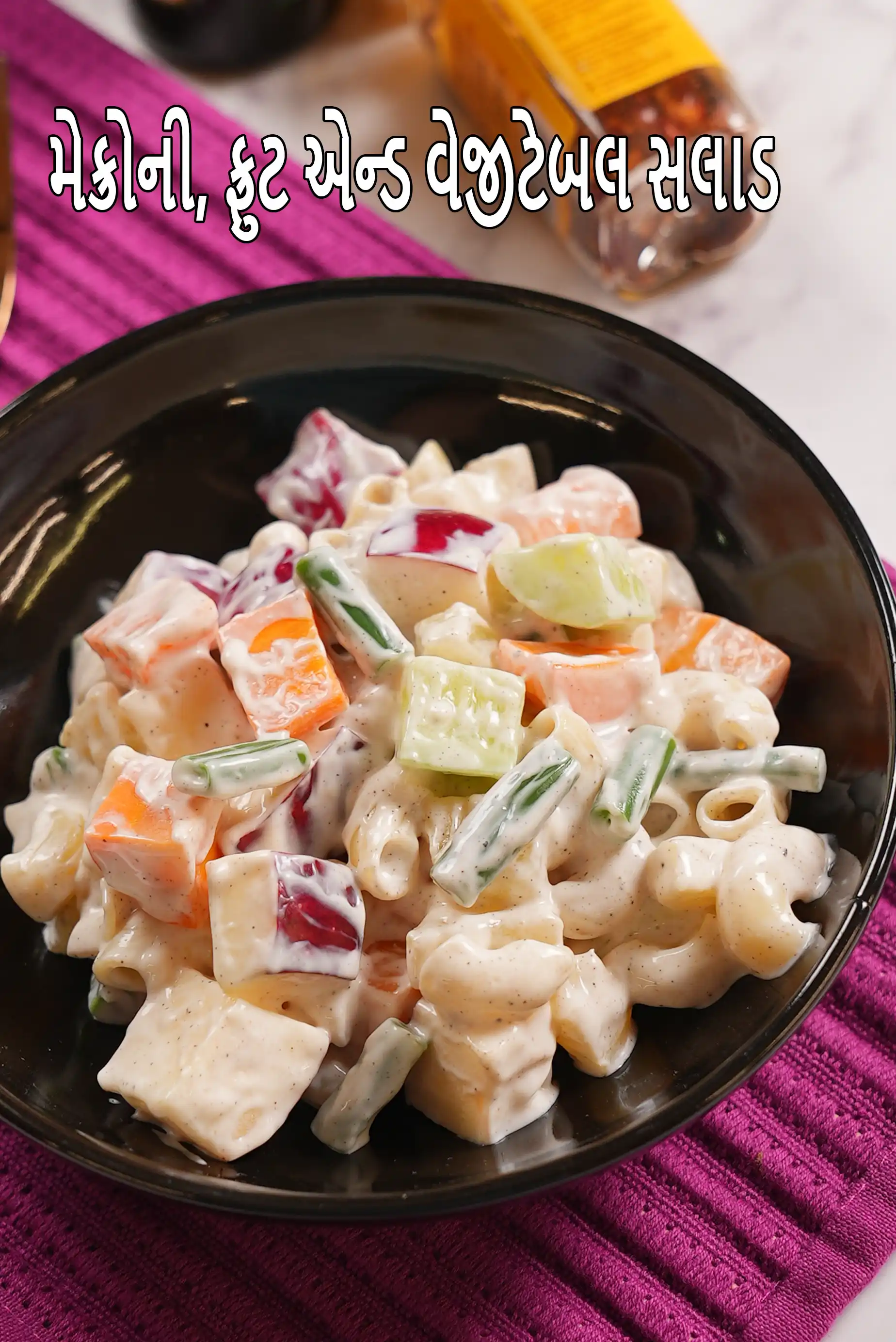 મેક્રોની, ફ્રુટ એન્ડ વેજીટેબલ સલાડ - Macaroni Fruit and Vegetable Salad recipe in Gujarati