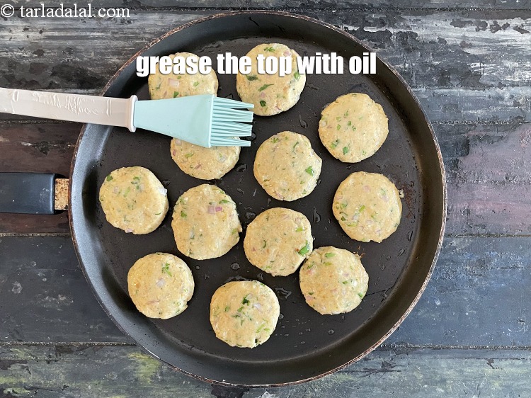 - Heat a non-stick tava (griddle) and grease it using ¼ tsp of oil.