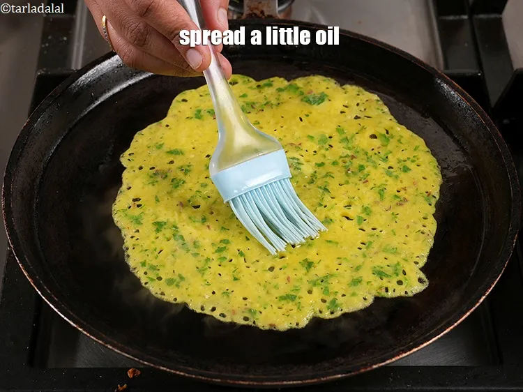 - एक नॉन-स्टिक तवे को मध्यम आंच पर गर्म करें और 1/4 टी-स्पून तेल से हल्का सा चिकना करें।