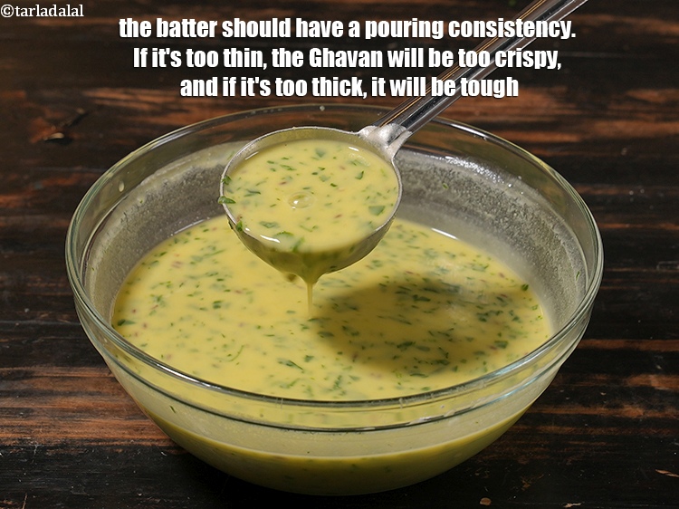 घोल इतना गाढ़ा होना चाहिए कि उसे डाला जा सके। अगर यह बहुत पतला होगा तो घावन बहुत कुरकुरा होगा और अगर यह बहुत गाढ़ा होगा तो यह सख्त होगा।