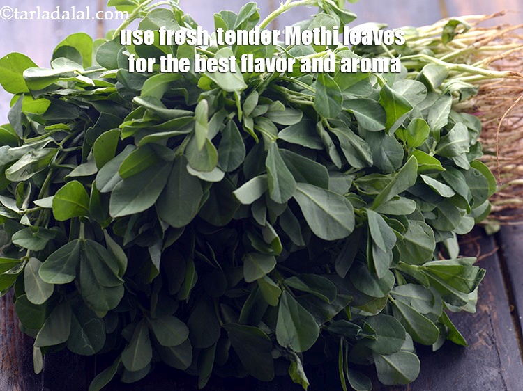 सर्वोत्तम स्वाद और सुगंध के लिए ताजे, कोमल मेथी के पत्तों का उपयोग करें।