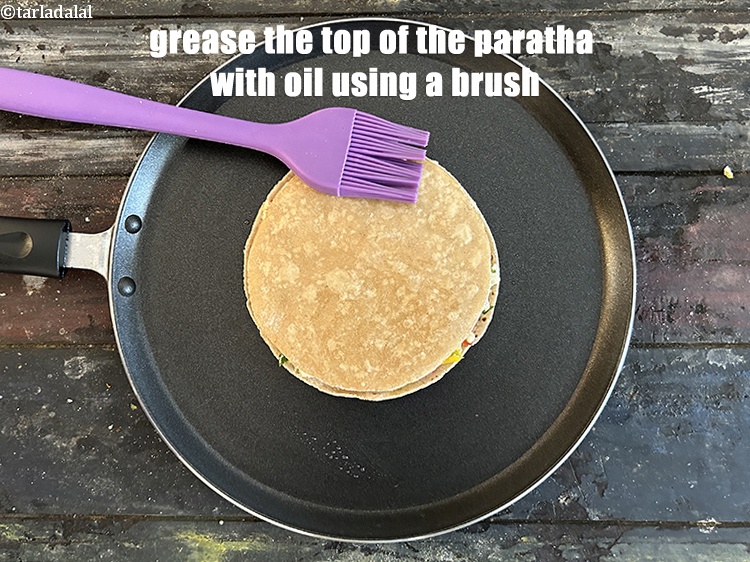 - Cook the parathas on a tava (griddle) on a medium flame using a little oil till both sides turn golden brown in colour.