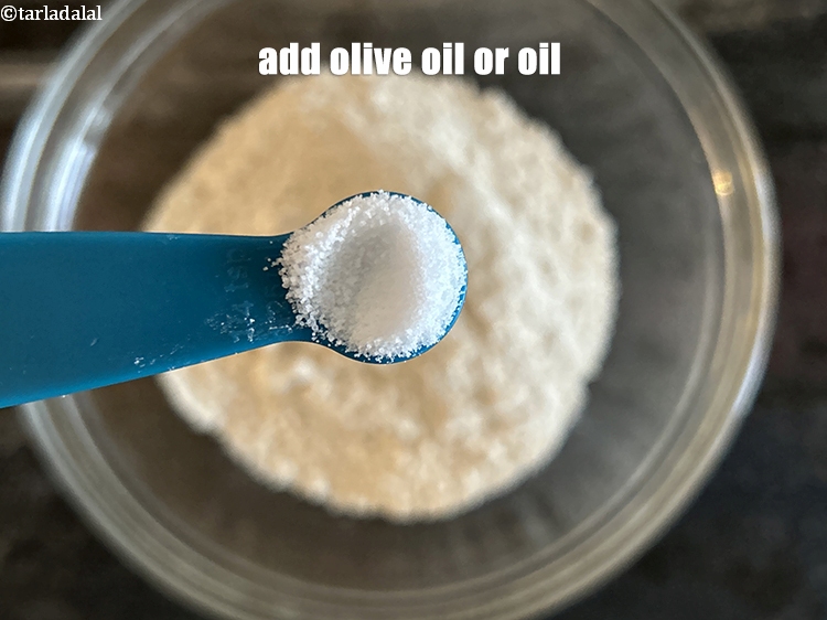 - Combine whole wheat flour, oil and salt together in a bowl and knead it into a semi-stiff dough using water as required.