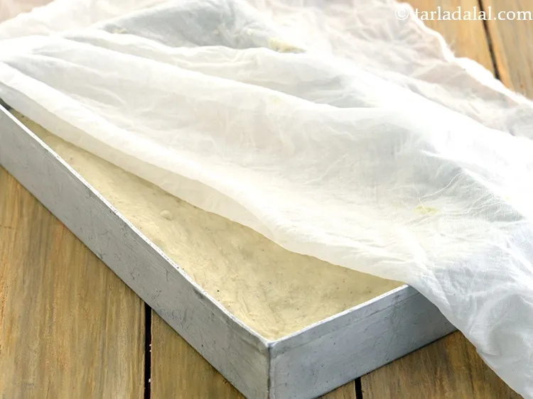 - Cover it with a damp muslin cloth and keep aside in a warm place for 30 minutes.