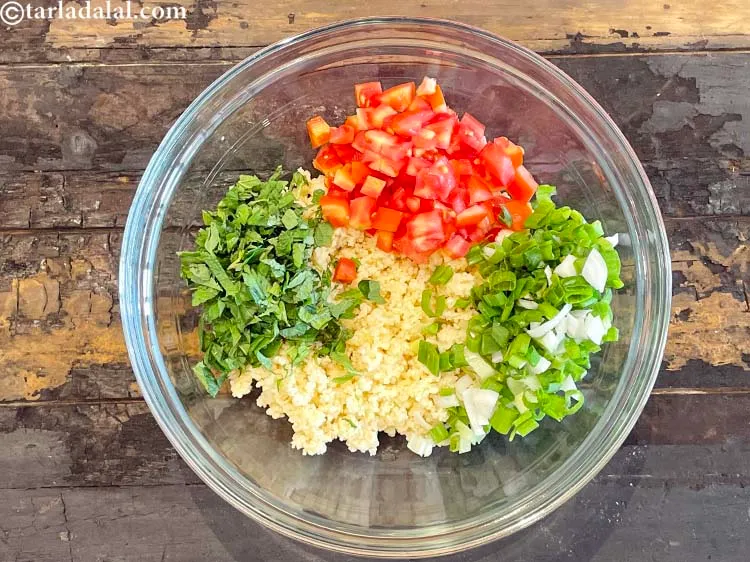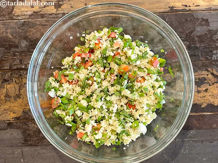 - Combine all the ingredients, including the cooked couscous, in a deep bowl and mix gently.