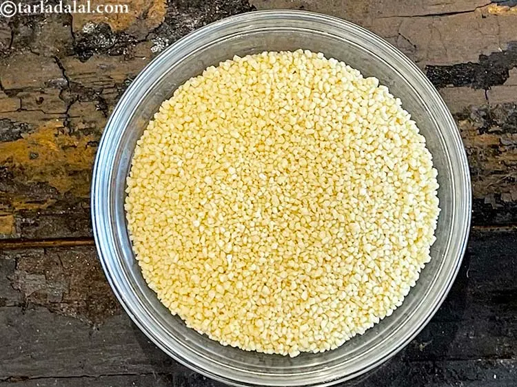 Add 1/2 cup couscous. If you wish, at this stage use broken wheat (dalia) instead as the taste will be the same.