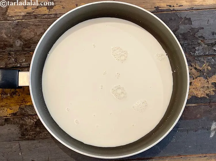 - Combine the couscous and milk in a deep non-stick pan, mix well and cook on a medium flame for 3 to 4 minutes or till it is tender. Keep aside to cool slightly.