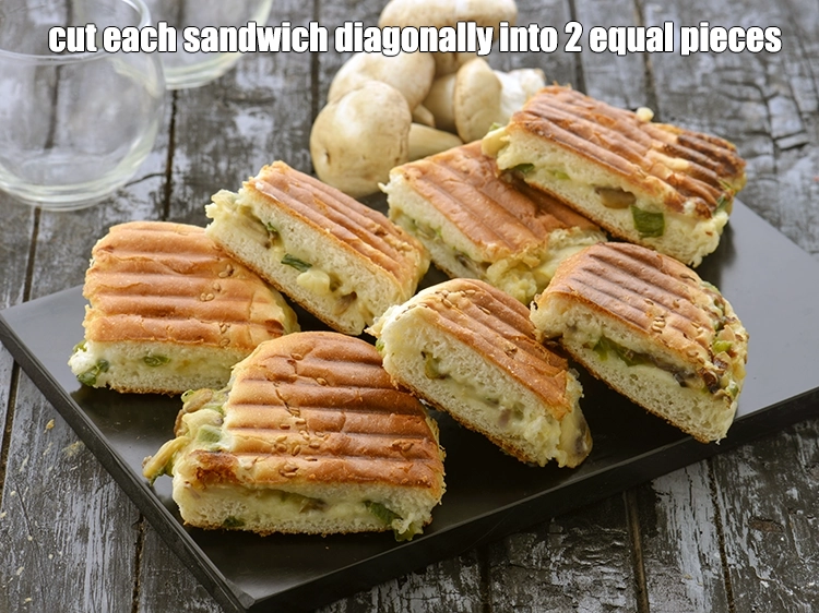 Serve Mushroom Cheese and Spring Onions Panini immediately.