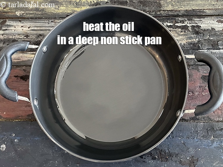 - Heat the oil in a deep non-stick pan, add the onions and garlic and sauté on a medium flame for 2 minutes.