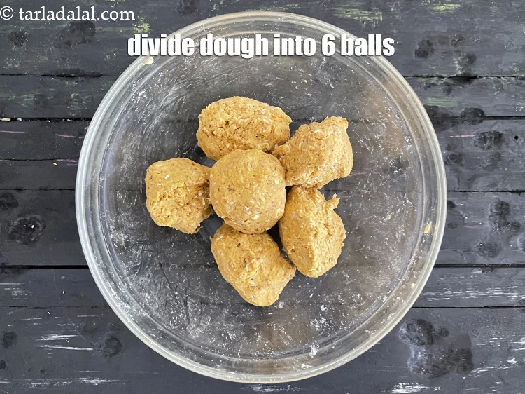 ઓટ્સ ફ્લેક્સસીડ રોટી રેસીપી | ફ્લેક્સસીડ રોટી | ઓટ્સ અને ફ્લેક્સસીડ સાથે હેલ્ધી અલસી રોટી | બનાવવા માટે, કણકને 6 સમાન ભાગોમાં વહેંચો.