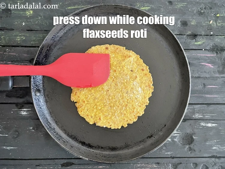 ફ્લેક્સસીડ રોટી રાંધતી વખતે સ્પેટુલાથી નીચે દબાવો.