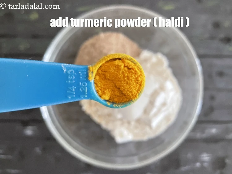 1/4 ટીસ્પૂન હળદર (turmeric powder, haldi) ઉમેરો.