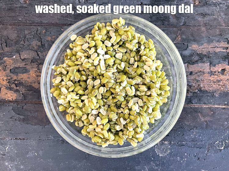 - 1/2 cup green moong dal (split green gram) , soaked and drained