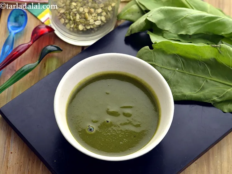 - Green moong dal used in this soup is easy to digest. But ensure that you have served moong dal individually to your baby before combining it with palak.