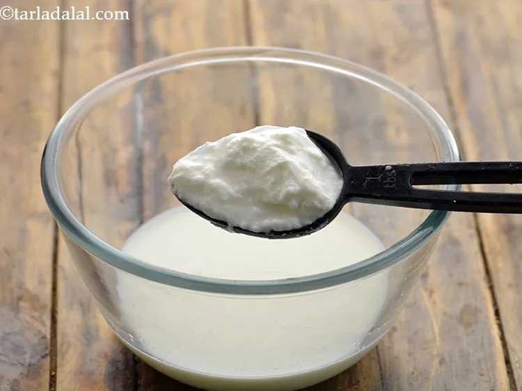 2 टेबल-स्पून दही (curd, dahi) डालें।