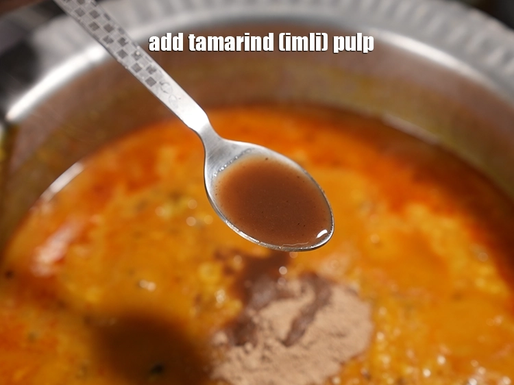 1 ટેબલસ્પૂન આમલીનો પલ્પ (tamarind pulp) ઉમેરો.