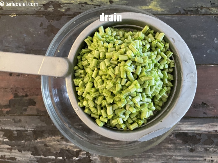 Drain excess water, pat them dry and place on a chopping board. image https://www.tarladalal.com/gavarfali-ki-sukhi-subzi-7463r