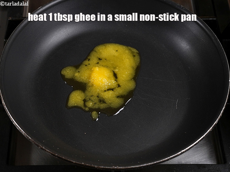 To make paneer kheer recipe | chenna payesh | Indian paneer kheer for upvas, vrat | paneer payasam | heat 1 tbsp ghee in a small non-stick pan.