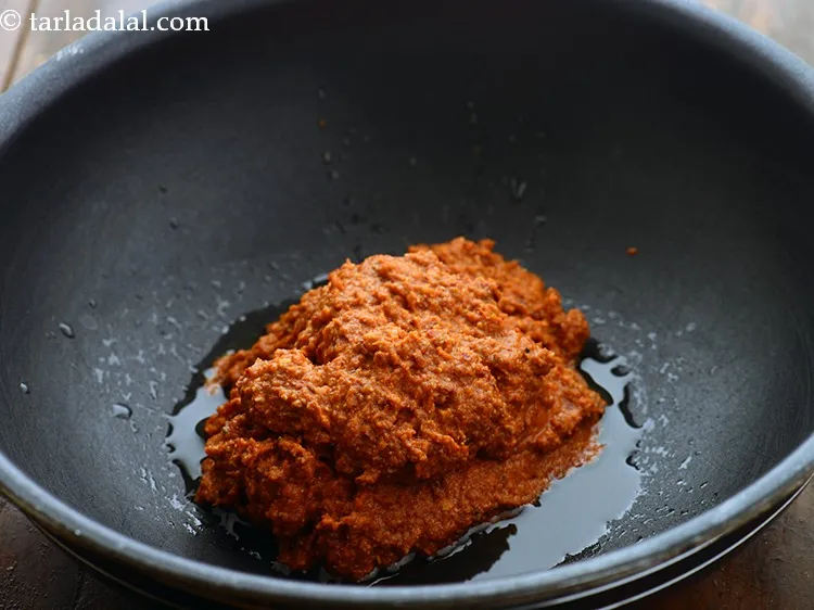 - To make paneer masala, heat the oil in a deep non-stick kadhai, add the prepared paste and cook on a medium flame for 2 minutes, while stirring occasionally.